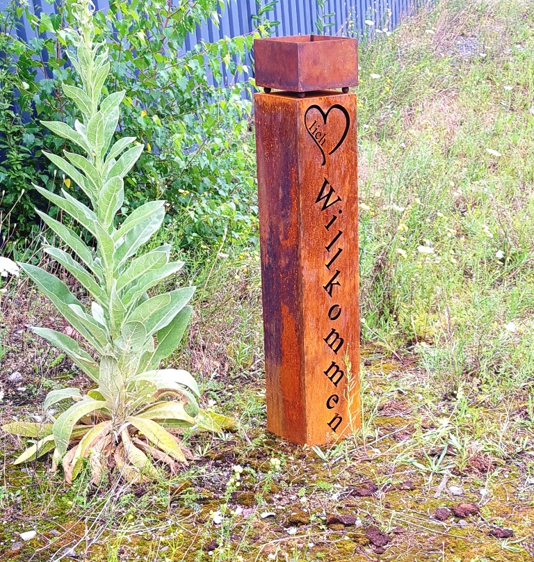 Gartensäule – Herzlich Willkommen - Edelrost