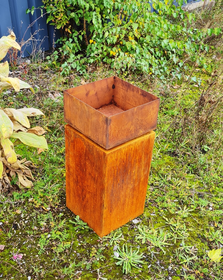 Für die Herstellung unserer hochwertigen Edelrost Designteile verwenden wir Stahlblech, welches wir mit einer schönen Rostpatina überziehen. Hierbei handelt es sich um einen natürlichen Vorgang.