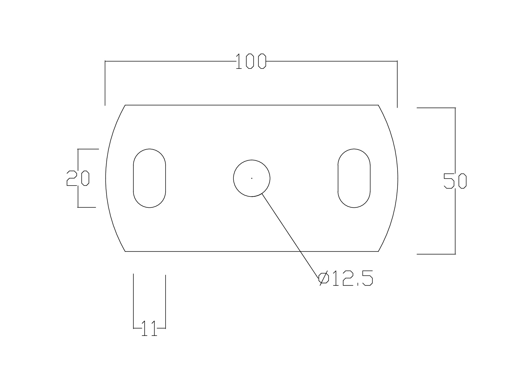 | 100 x 50mm | 1x Ø 12,5mm / 2xØ 11x20mm | 70mm |
